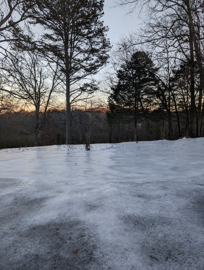 Last week I was wrong when I said the snow storm was almost over for the South, to this day temperatures have yet to go above freezing. My driveway is still frozen and even though we’ve parked at car at the bottom of the hill, walking down is still a dangerous trek. Being locked inside all week has possibly messed up the baby’s sleep cycle, the last two days she hasn’t been sleeping for her lunchtime nap. She goes down like normal then about five minutes later pops up and won’t fall back asleep. Days when the baby doesn’t nap are long, or at least they feel longer because I’ve lost a bit of sanity. Without a nap I have to provide and extra hour or two of entertainment without ever having my normal break, plus the baby is in a state of overstimulation with more energy than she ever has. Needless to say I’m tired, tired of the snow mostly, it has overstayed it’s welcome. This week I’m hoping to get some repairs done on the house, today we’re playing a trip to the hardware store for supplies. My wife has been helpful in researching what needs to be done and what equipment we need, my brain can handle new information right now. In a couple months I’ll be warm and life will be settling down, then my brain and body will recover to their previous state. A couple months ago I was a powerhouse of intellect, learning Mozart and speed reading, that stuff is mostly to keep me sharp during times of peace. Now is chaos and casualties are expected, we’ll be alright and come out on the other side stronger than ever. I have to be thankful for the challenges that allow me to grow.