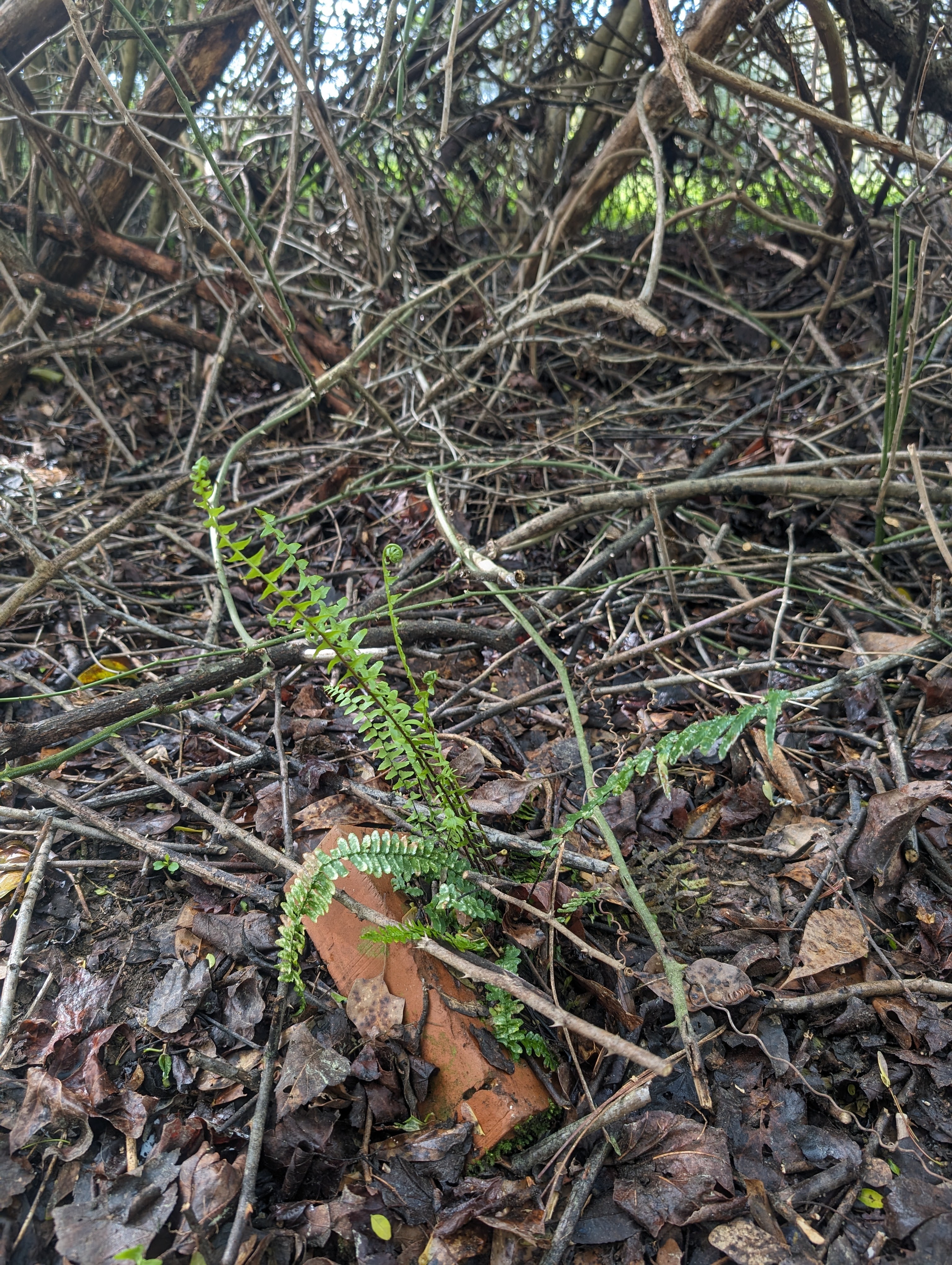 Today is a big day, I’m going to a tree nursery to see if I can get some peach trees. The location is also a vineyard so I’m sure there will be lots to interest me. There’s not much time so I’ll have to stay on point. Yesterday I was able to mow my pool area and measure the front yard for the trees. My set up will have room for 14 trees, a little less than I was hoping, but more than I’ll need. Of course there’s plenty of land and I could go wild planting peach trees everywhere, that’s not how I operate, I believe in aesthetics. The peach trees will frame the house, I’d also like build a wall of evergreen trees next to the road to hide from the world. As the first steps in a plan take place they reveal what the next steps may be. I like to make sections, then the different sections have points of interest, that way while walking the property there’s something to walk towards rather than wandering through an endless array of monocultures. The other activity was the pool mowing, I got so focused on using the bag to catch grass that installed the bag plug because it had the word bag and not thinking what plug would refer to. The plug is for push clippings out the side, thankfully it didn’t mess anything up and the mowing was simple enough, there’s a lot to keep track of. When I picked the baby up at daycare I had a tree service guy waiting for me at home to meet about removing my downed tree. I remember a time when I used to lay in bed all day, now there’s no time, as soon as one activity is complete it’s on to the next. Rest too much made my body ache, I’m happier on the move. Here’s a photo of the fern covered in thorns from yesterday’s post.
